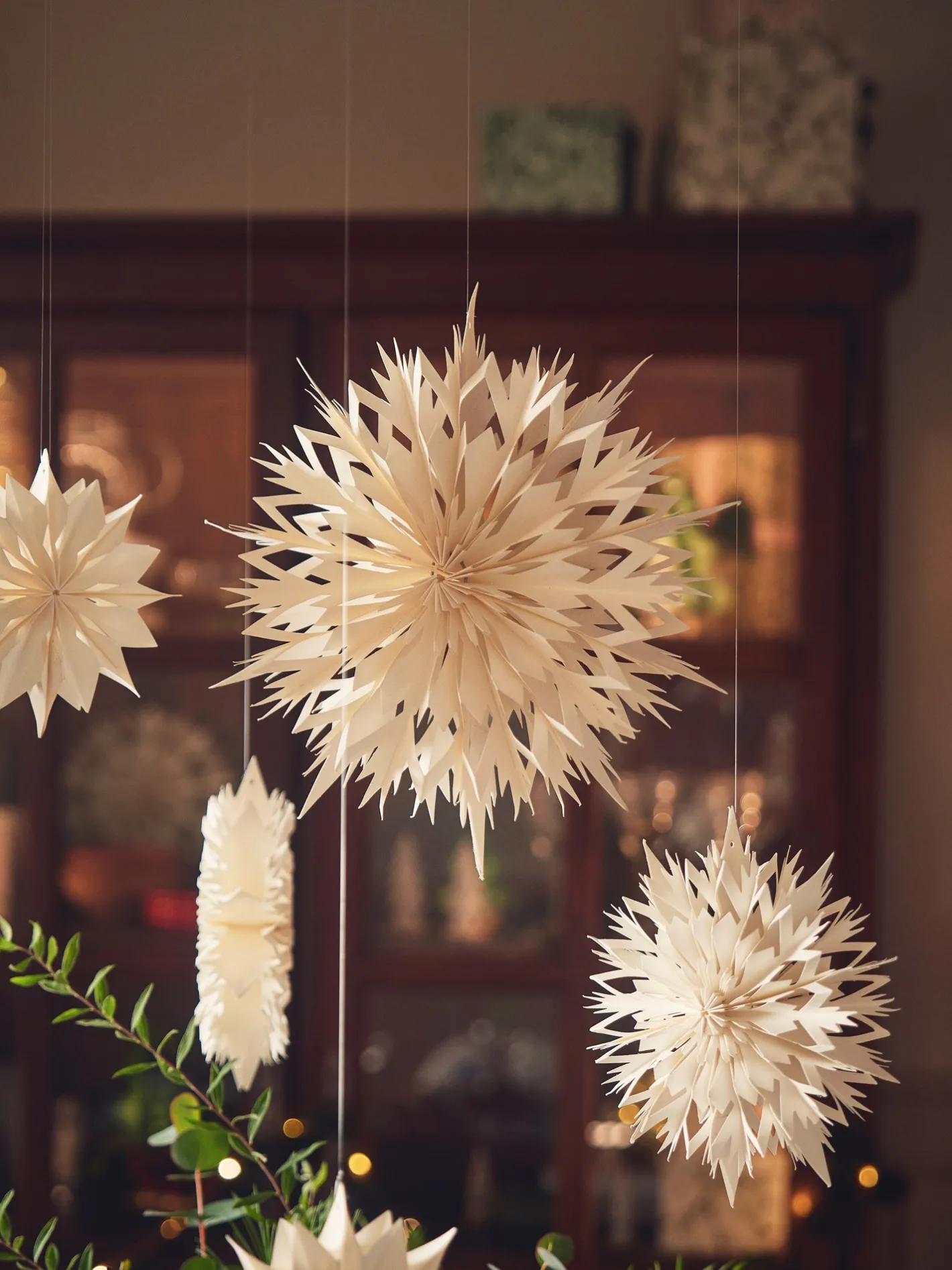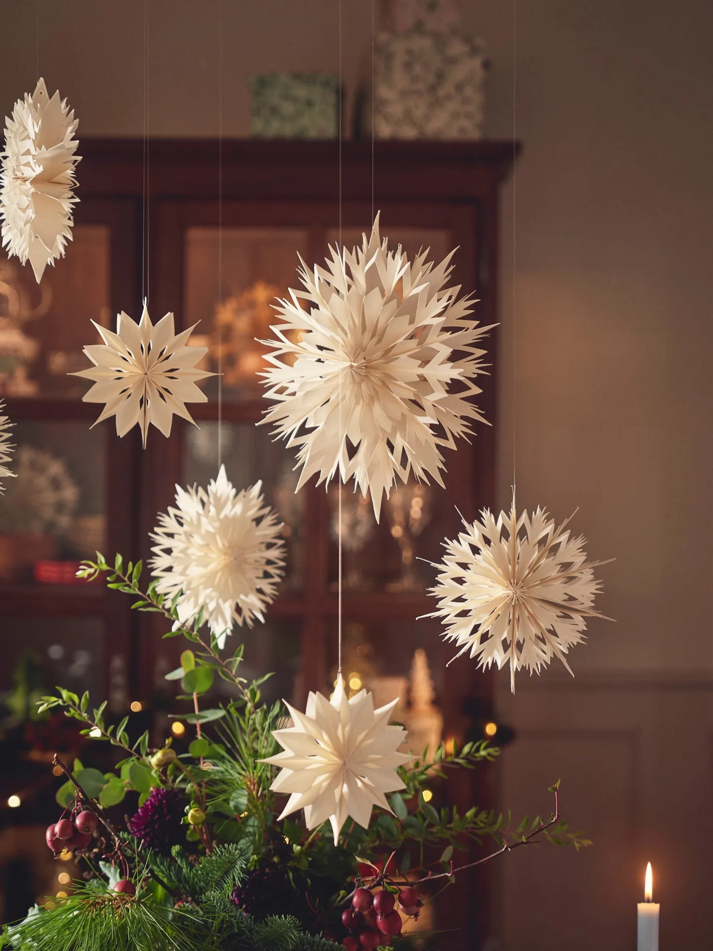 Søstrenes snefug til ophæng er lavet af FSC®-certificeret papir.Lad snefnugget stråle alene, eller kombinér det med andre papirsnefnug og stjerner i en magisk udstilling.