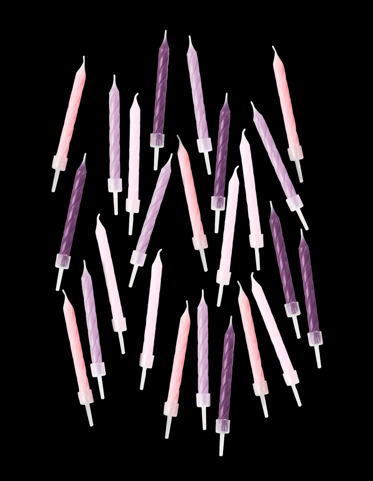 Søstrenes snoede kagelys er lavet af paraffin, og hver pakke indeholder 24 snoede lys i skønne farver samt 24 gennemsigtige lysestager. Hvert lys måler 0,5 cm i diameter og 6 cm i længden.