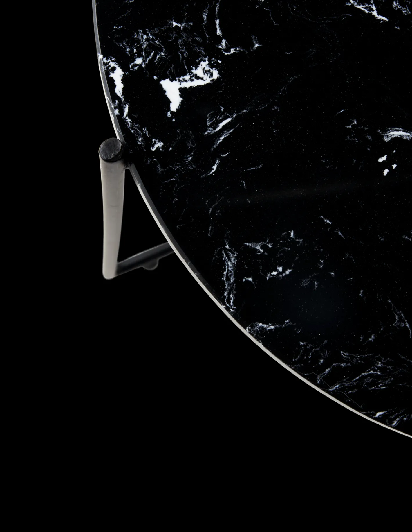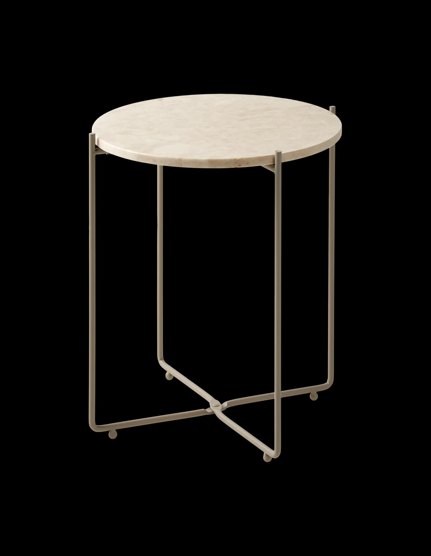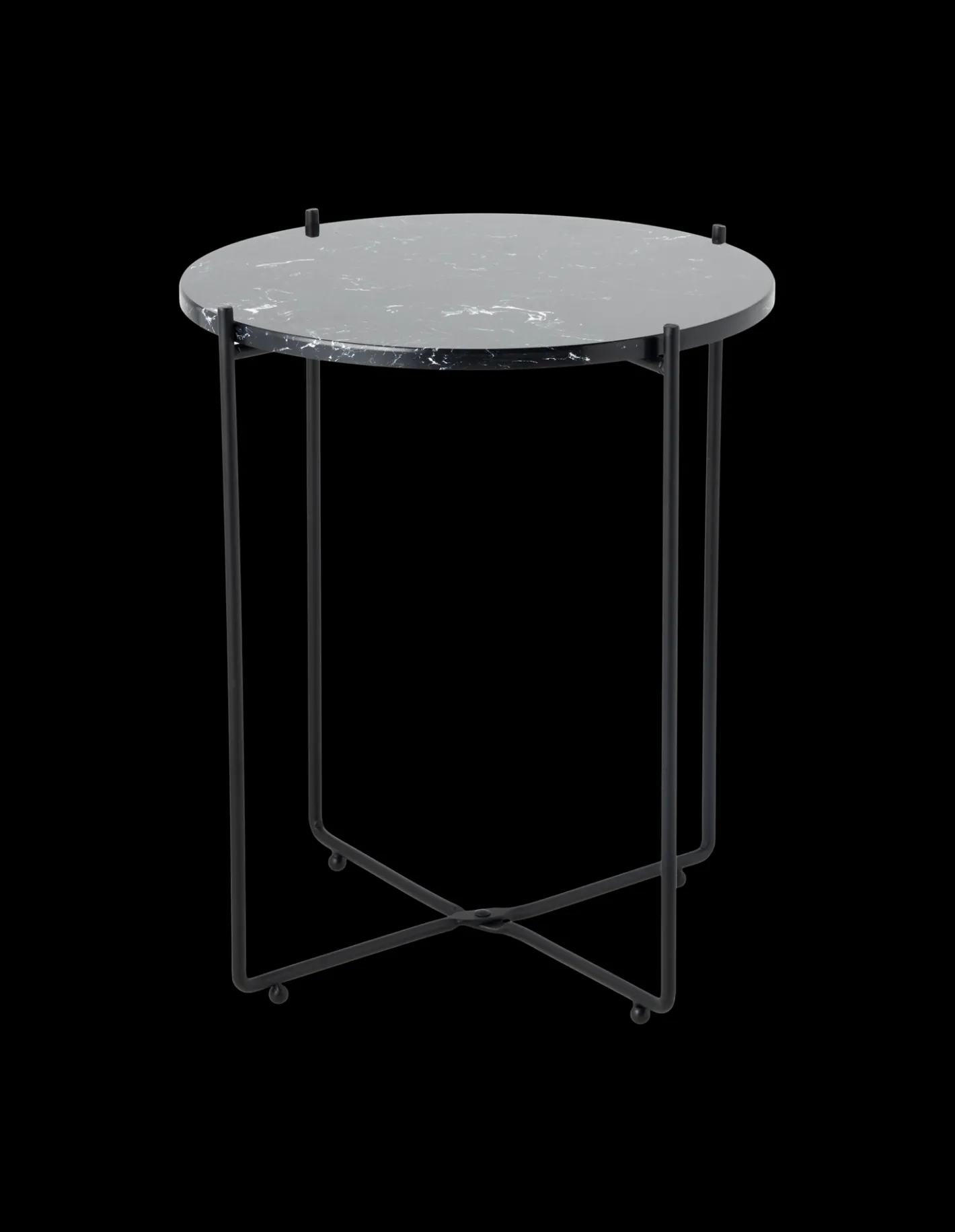 Søstrenes sofabord er lavet af jern og har en marmorbordplade. Sofabordet har en diameter på 42 cm og en højde på 47,5 cm.Da marmor er et naturmateriale, påpeger søstrene venligt, at farven kan variere lidt.