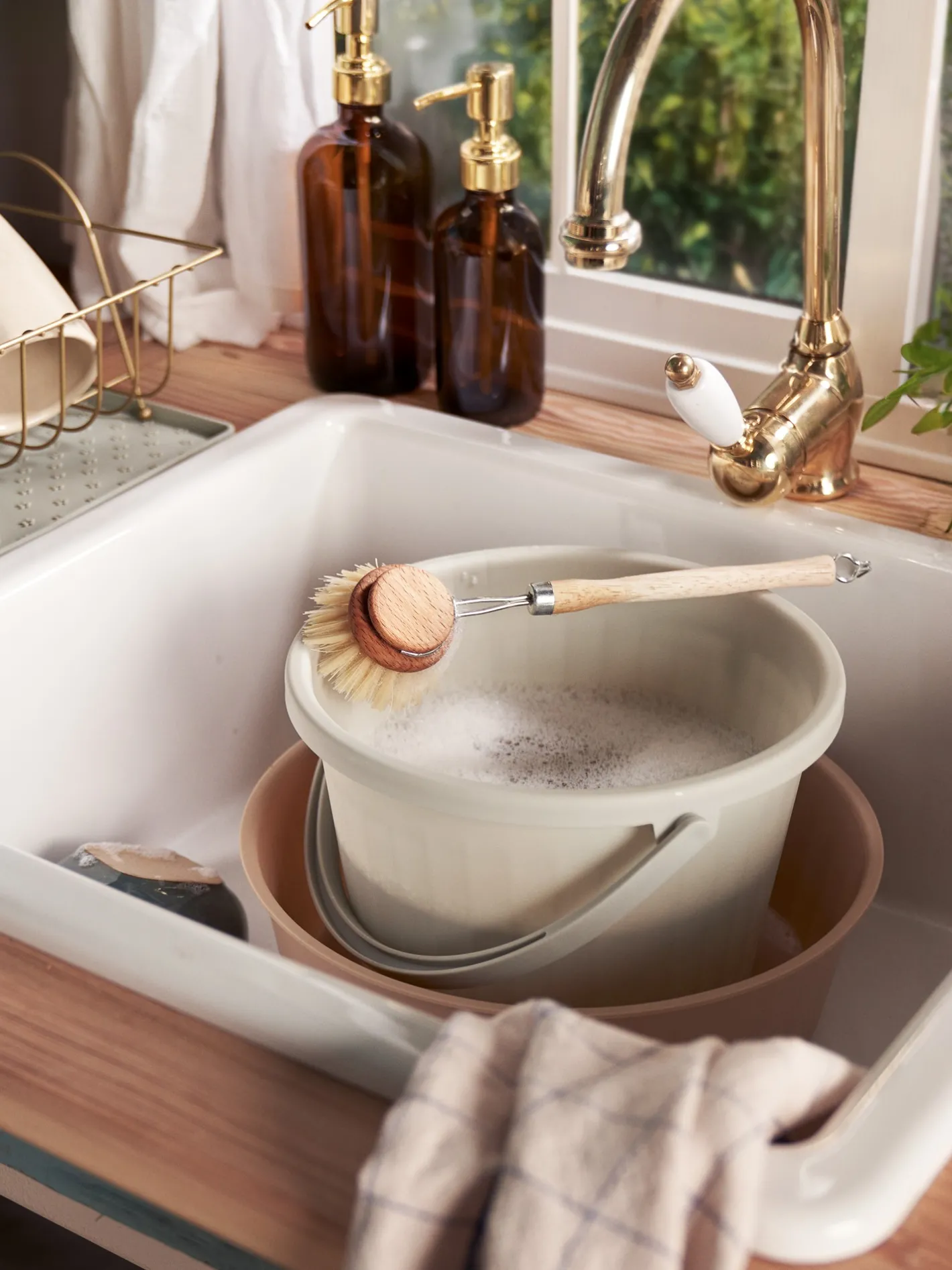 Søstrenes spand er meget praktisk til at rengøre huset med.