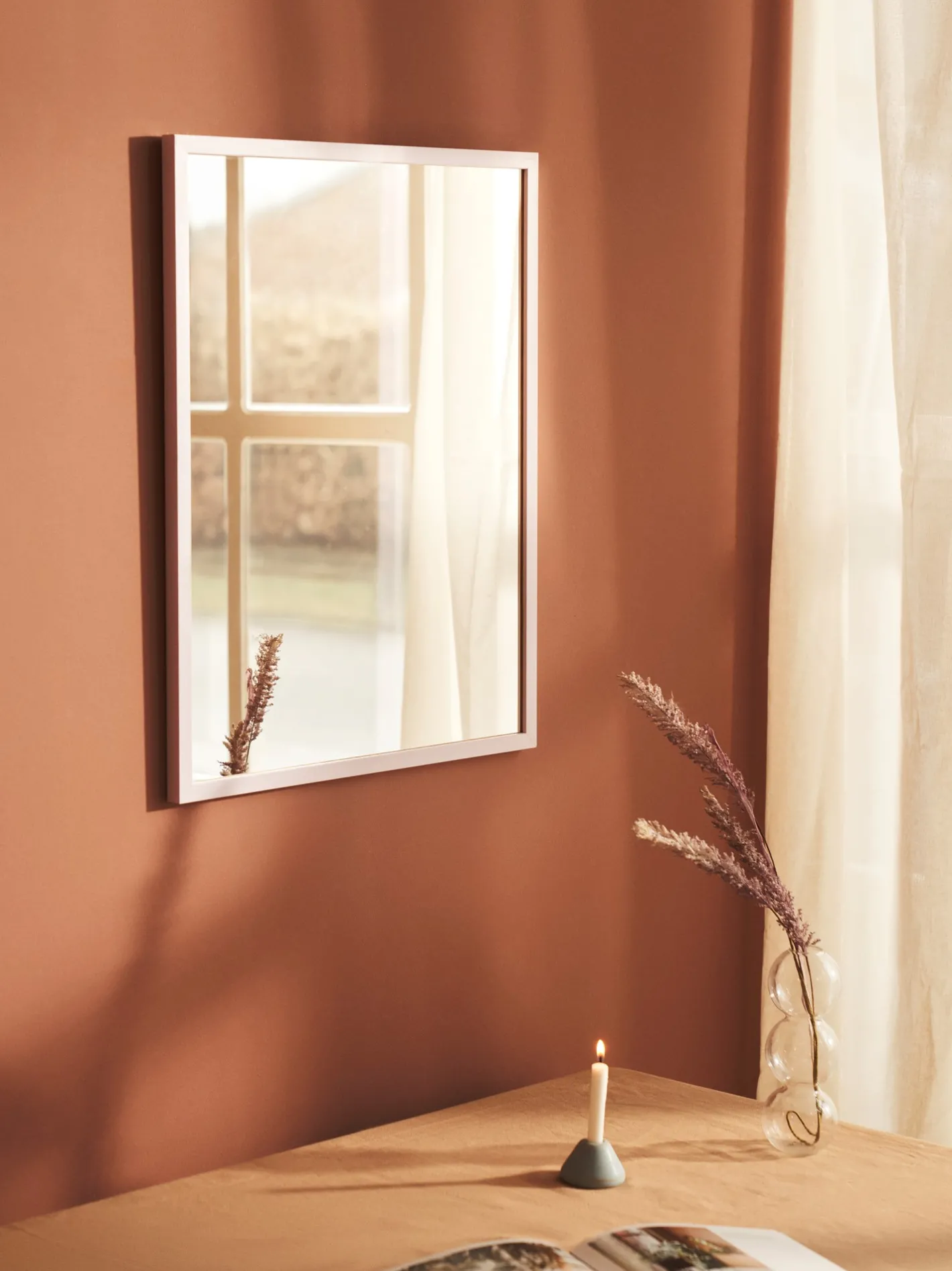 Dette skønne spejl fra danske Poster & Frame har en ramme i træ og er produceret i Danmark. Materialerne af høj kvalitet mødes i en vidunderlig forening af funktionalitet og design.Søstrene gør venligst opmærksom på, at da træ er et naturmateriale, kan rammens udtryk og farve variere en smule.