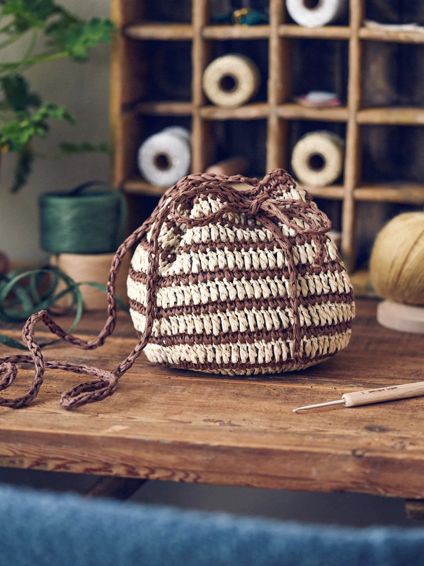 Søstrenes snørepose er lavet af FSC®-certificeret papirgarn, hvilket gør den til en usædvanlig tilføjelse til ethvert outfit.
