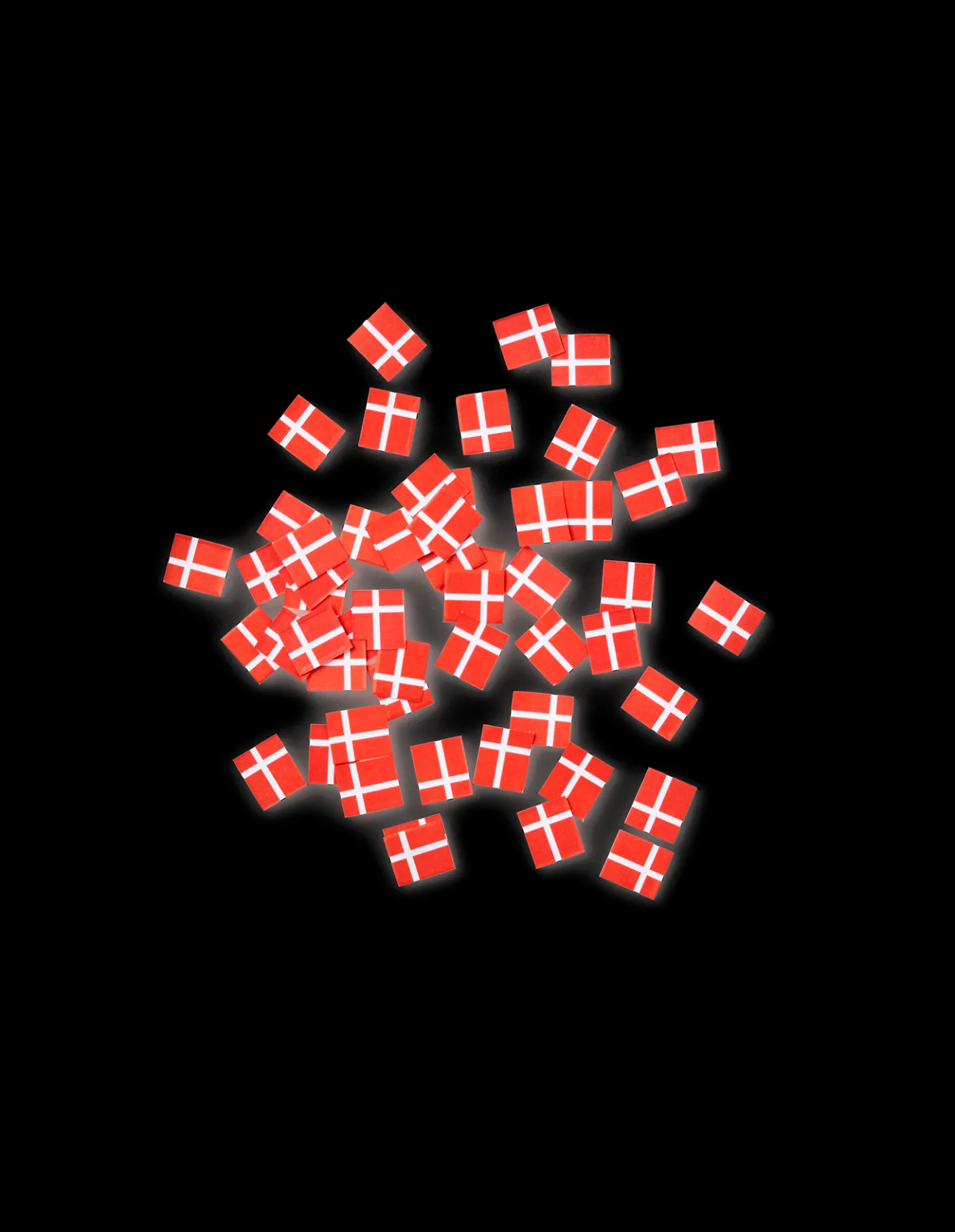 Søstrenes strøflag illustrerer det danske flag Dannebrog. Hvert flag måler 1,5 x 1,3 cm og fås i en pakke à 15 gram.
