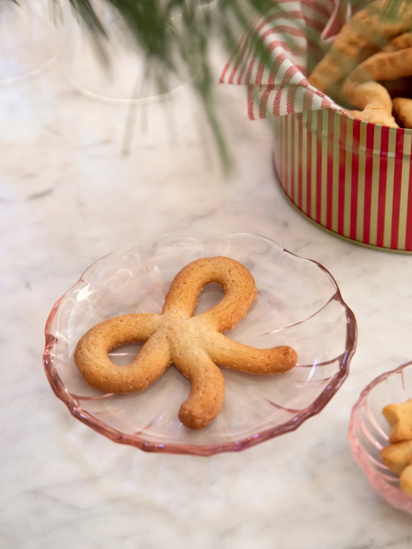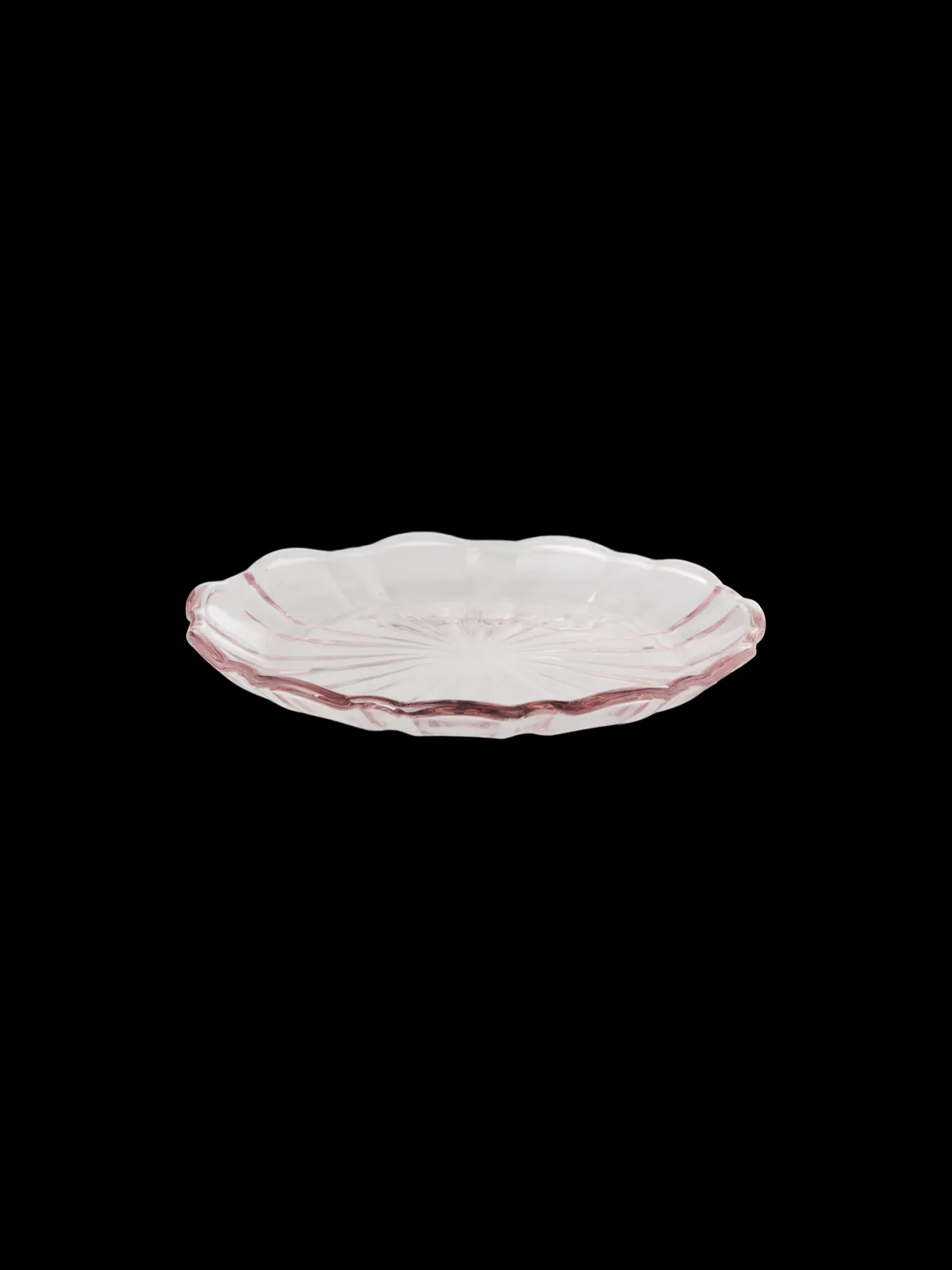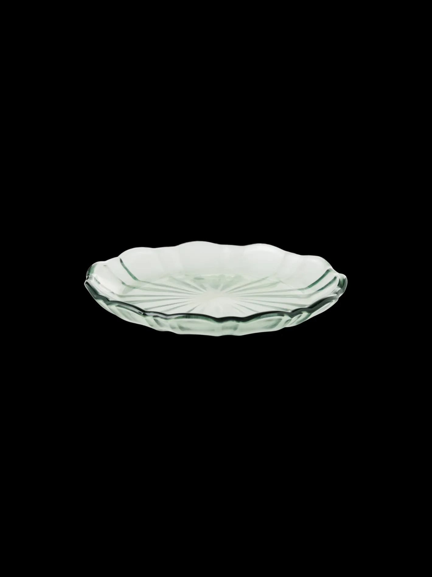 Søstrenes tallerken er lavet af glas og måler Ø14,4 cm.