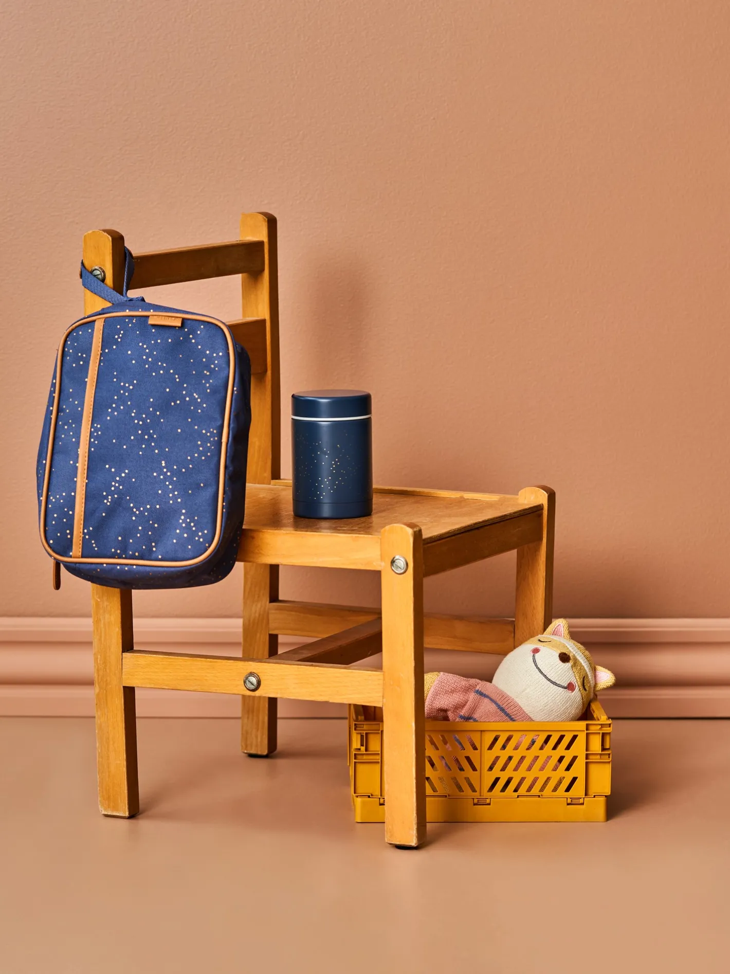Denne madkasse fra Fresk er dobbeltvægget og lavet af rustfrit stål. Den måler 8 cm i diameter og 12 cm i højden og kan indeholde op til 300 ml.”Den perfekte ledsager til Deres gåture eller dagsture,” siger Anna med et smil. “Og det yndige motiv passer godt sammen med andre Fresk-produkter,” bemærker Clara begejstret. Anna og Clara bemærker venligst, at dette produkt, når det håndteres korrekt, kan holde indholdet varmt i op til 6 timer og koldt i op til 8 timer.