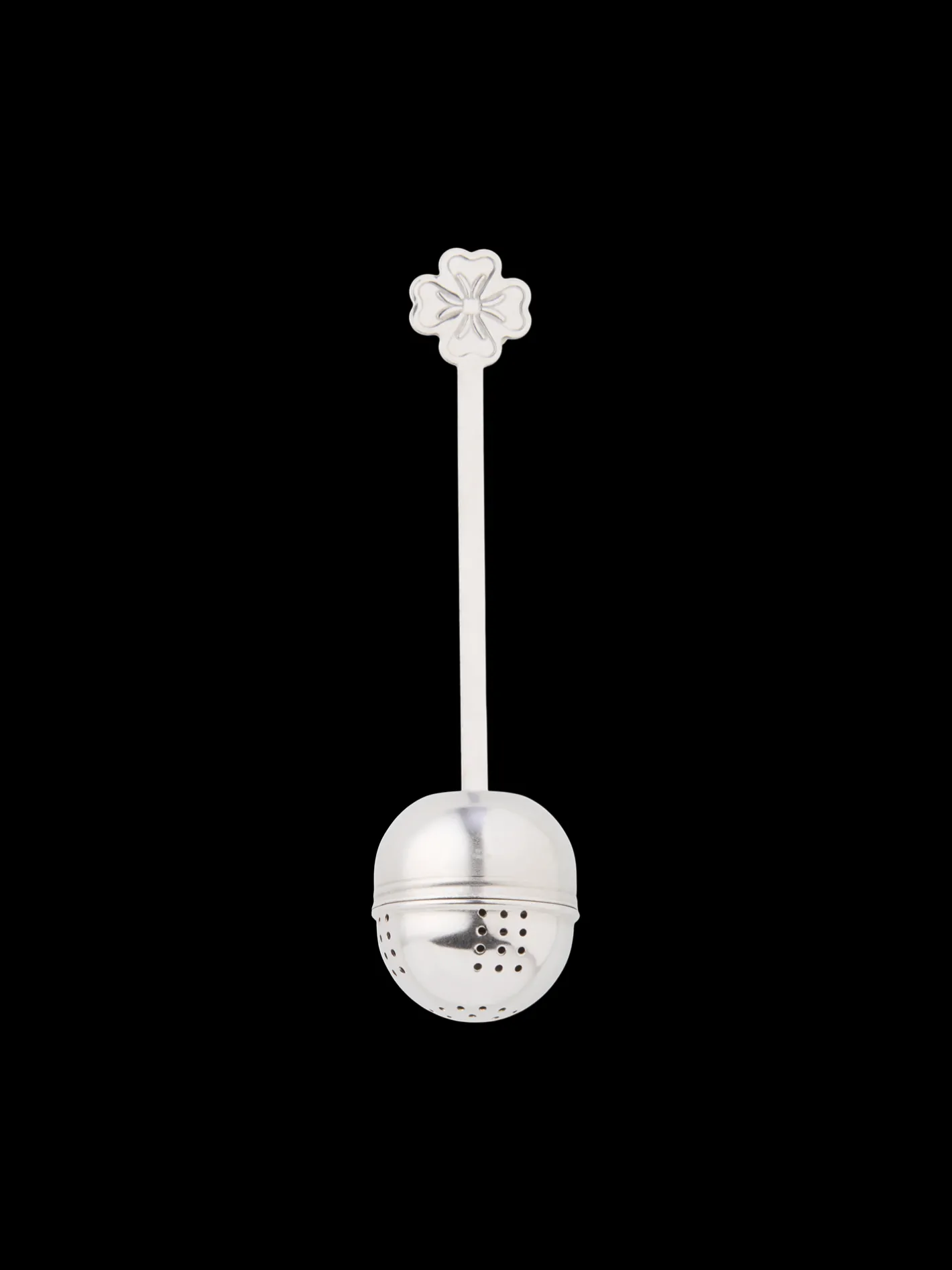 Søstrenes yndige tesi er lavet af rustfrit stål og måler 18 cm i længden.
