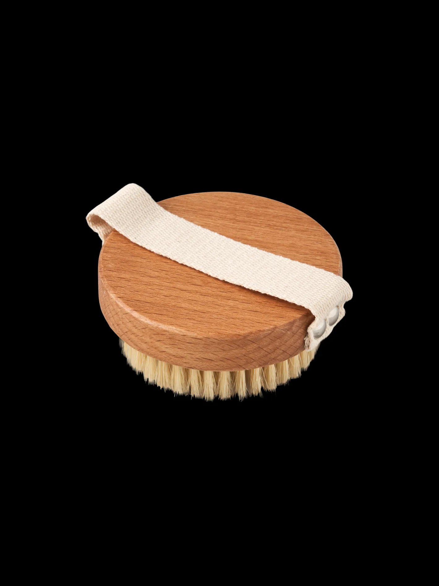 Søstrenes runde kropsbørste er fremstillet af 100% FSC®-certificeret bøgetræ med naturlige børstehår. Den har også en rem for et robust greb.
