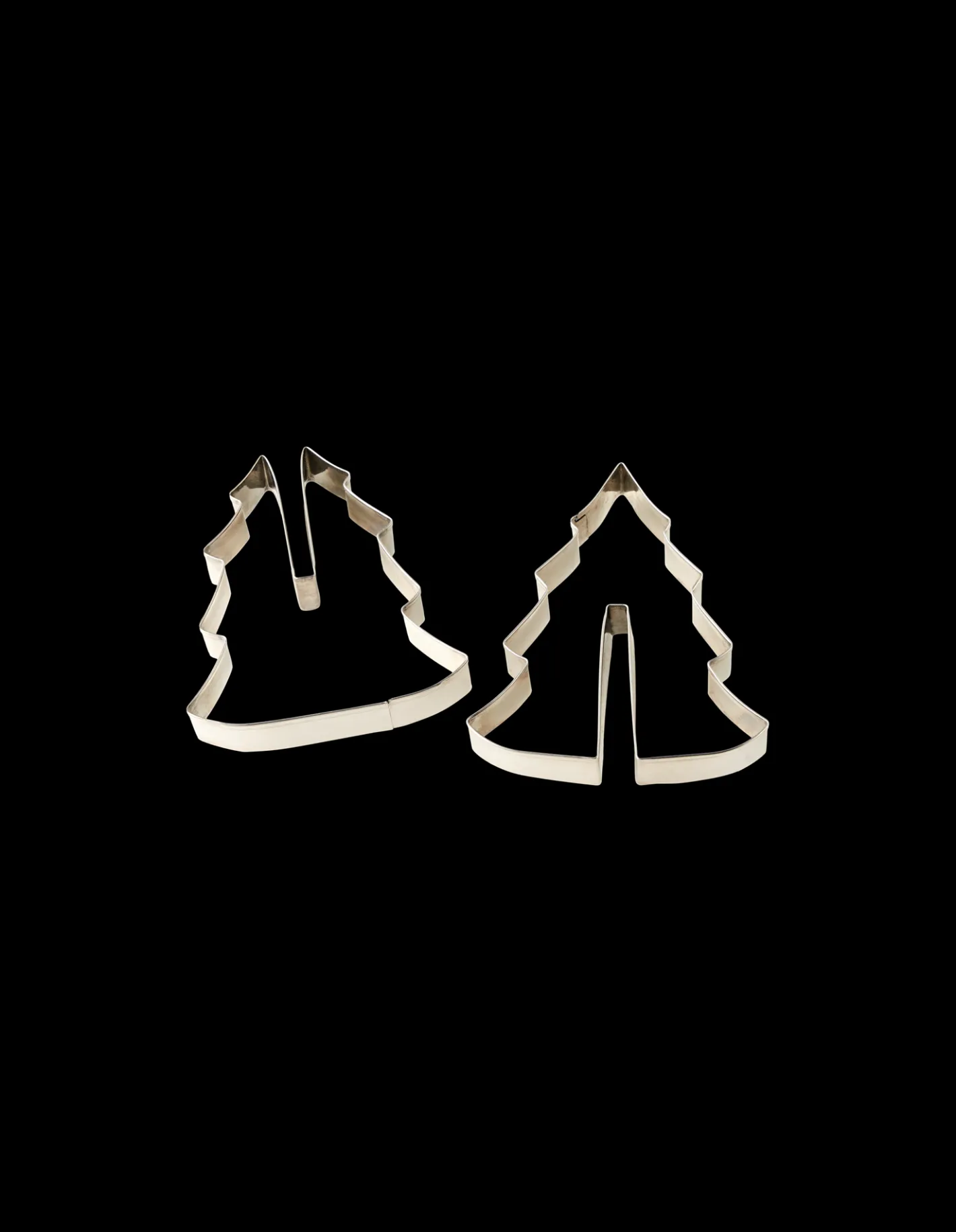 Søstrenes kageudstikker er lavet af rustfrit stål og har form som et juletræ.