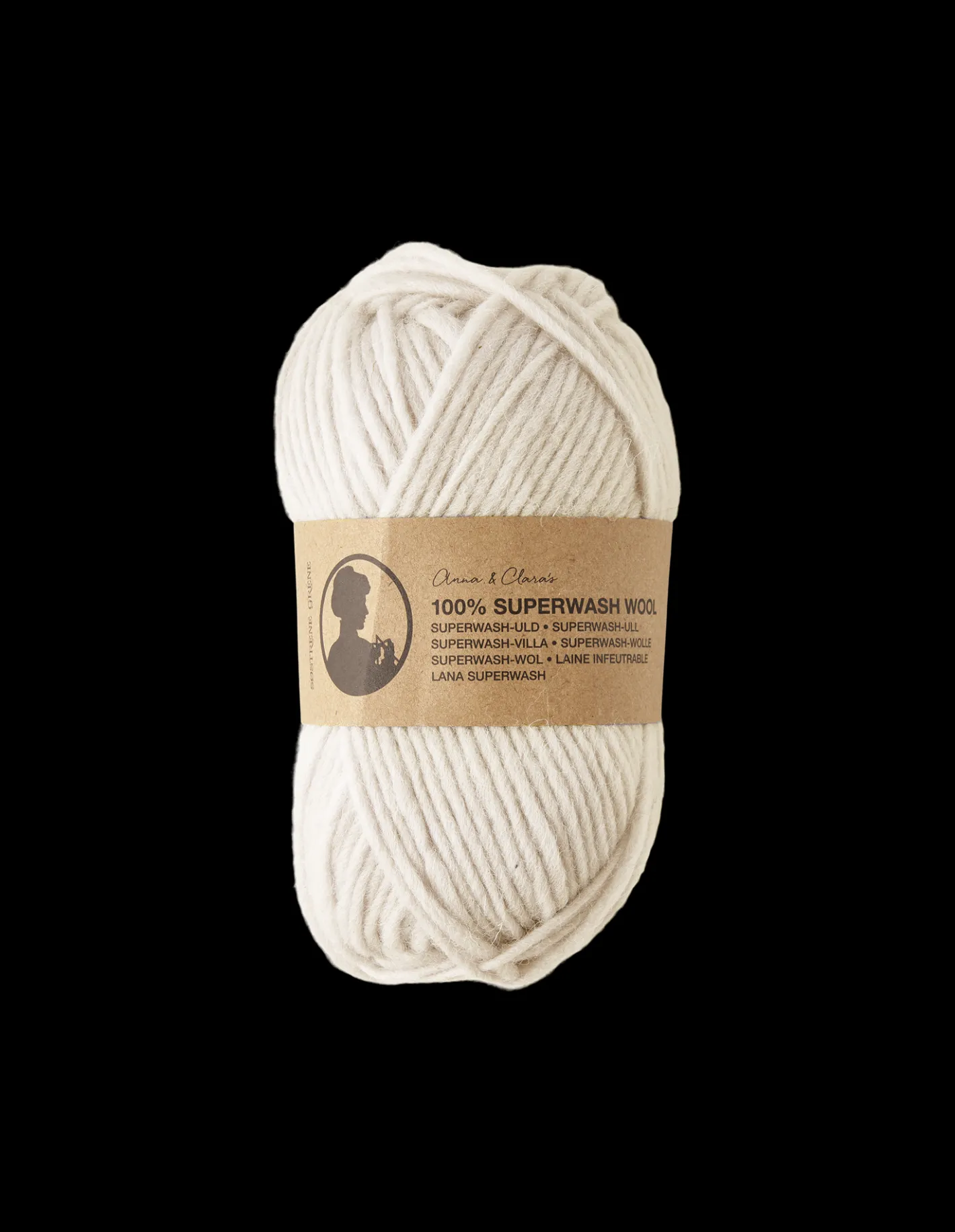 Efter en dag fyldt med praktiske aktiviteter nyder Clara et roligt øjeblik med hendes hækleprojekt. Med hæklenålen i hånden mærker hun, hvordan roen sænker sig.”Friske nøgler af garn er for den håndarbejdende, hvad et blankt lærred er for kunstneren,” som Anna og Clara ynder at sige. ”Gennem fornyende farvesammensætninger skabes det unikke,” tilføjer Anna.Søstrenes uldgarn er lavet af superwash-uld og vejer 50 g.